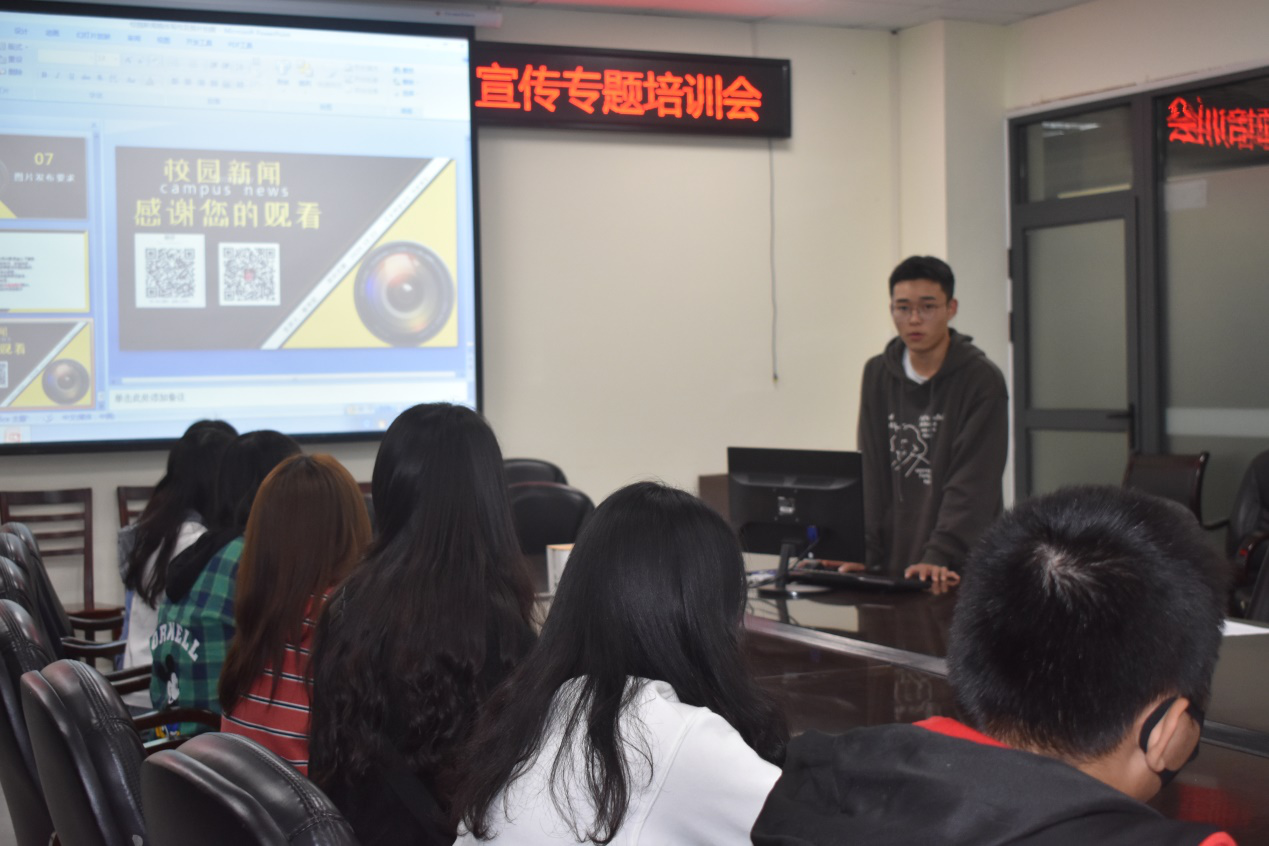 会议尾声,为了让大家更好地理解,掌握摄影技巧,侯书旺主席让每位成员尝试使用专业照相机,将理论与实践相结合,并在实践中近一步理解、掌握摄影方法。通过这次会议,我们了解到了新闻稿的基本写作要求,初步掌握了拍摄技巧,为今后的工作打下了坚实的基础。最后会议在部长严柯星的总结中圆满结束。通过本次培训会,希望部门成员更快熟悉自己的工作业务,明确自己的责任,并期待在日后能高效率、高质量的完成工作。