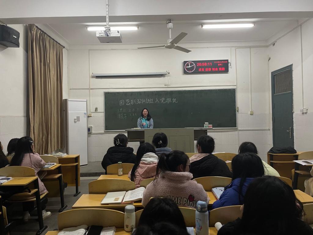(通讯员:刘卉悦)为纪念建团100周年,评选先进、树立典型,激励广大青年不忘初心、牢记使命,园艺职32101班于2022年3月9日21:00在2教309教室举行推优大会,班主任吴山老师及全体同学参加了本次会议。