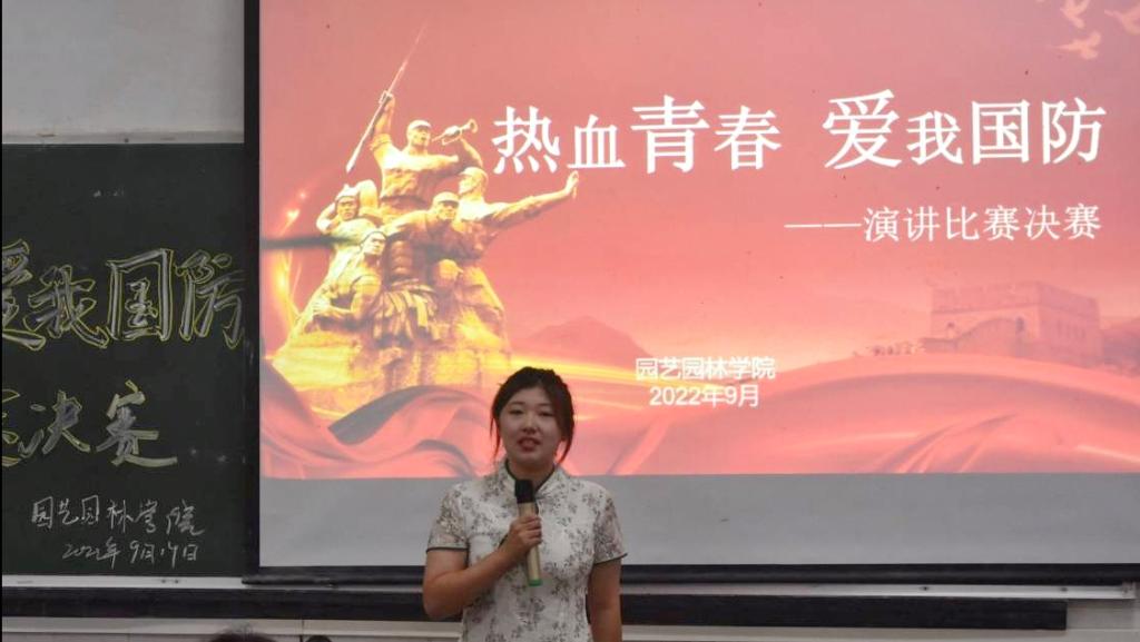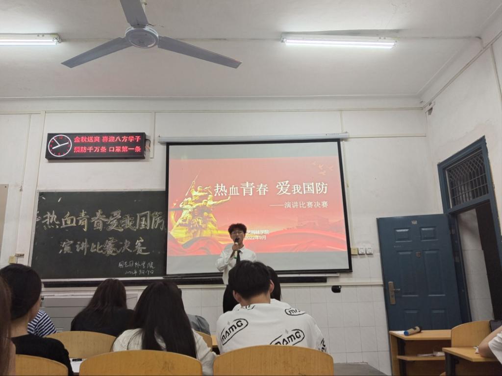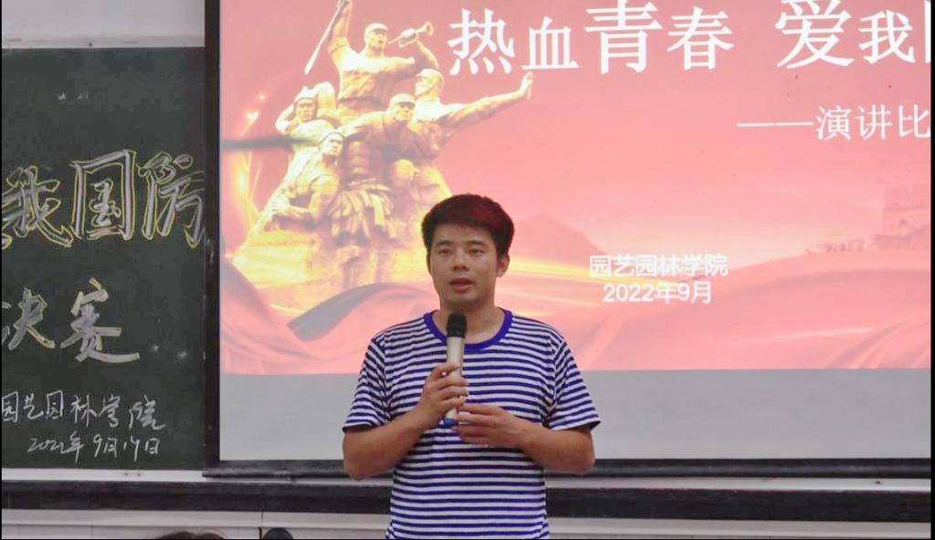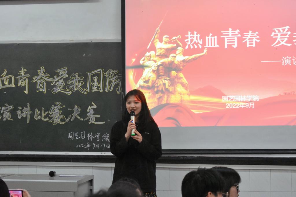 主持人介宣读比赛规则后,比赛正式开始。选手们依次上台演讲,四号选手蒋润华以《热血青春 爱我国防》为题,以自己的爷爷是位老党员,时刻勉励自身,忠于人民,忠于党。十九号选手李胜男带来的《赓续国防星火,鸣奏时代华章》,讲述了我国百年国防史以及当前我国的安全形势,表达了对国防的深刻理解。来自园艺职32201班王承洋,以《中国强军梦 时代青年梦》为题,凭借出色的实力,力压群雄,获得了本次演讲比赛的第一名。