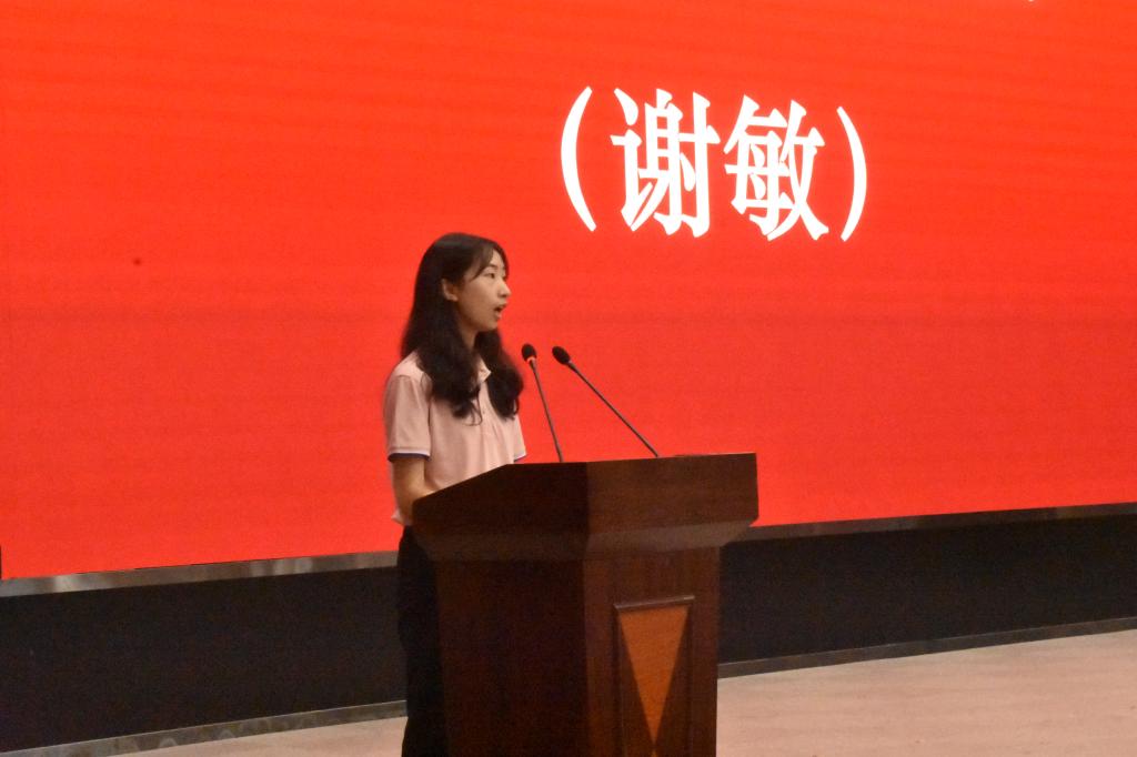 仪式进入第六项,员工代表发言。由本科毕业生代表谢敏和硕士毕业生代表李英杰发言。他们代表毕业生们表达对学校和老师们教导的感恩,并表示会在未来新的领域接续奋斗,不忘师恩,砥砺前行。