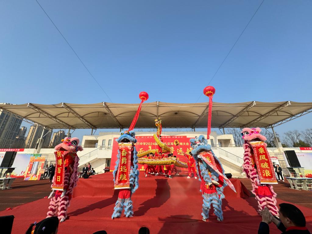 在本次招生宣传期间,恰逢湖北省武穴中学举办2024届成人礼暨高考誓师大会,威廉希尔中文官方网站舞龙舞狮队应邀参加开场表演,为高三学子加油鼓劲、喝彩助威。