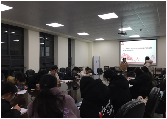 本次党会中,重点选学了《党的十九届四中全会<决定>学习辅导百问》的第35-43页。通过学习更深刻地明白了我们党为什么要坚持和完善我国人民当家作主制度体系、为什么说人民代表大会制度是我国的根本政治制度、为什么要坚持和完善中国共产党领导的多党合作和政治协商制度。首先,人民是推动历史发展的根本力量,人民当家作主是我国社会主义制度优越于资本主义制度的根本所在;其次,我国实行的人民代表大会制度是体现和保证人民当家作主的新型政治制度,工人阶级领导的以工农联盟为基础的人民民主专政的国体,这决定了人民当家作主,国家一切权利属于人民;最后,中国共产党领导的多党合作和政治协商制度反映了我国人民当家作主的社会主义民主的本质,体现了我国政治制度的特点和优势,具有巨大的优越性和强大的生命力。