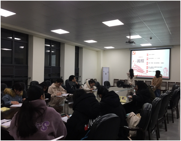 此次党日活动分为五个部分,分别为重温入党誓词;诵读党章第九章(党组)、十章(党和共产主义青年团的关系)、十一章(党徽党旗);通读《摘编》(重点选学第六、七部分);学习《党的十九届四中全会<决定>学习辅导百问》(重点选学P35-43);开展研讨(对照党章党规找差距)。