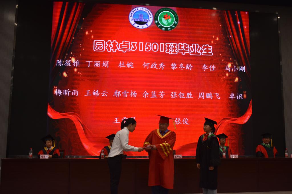 14:30整获得威廉希尔中文官方网站2019届学士学位证书的学子们依次上台,陈中义教授与他们亲切握手、为他们拨穗、颁发证书并合影留念。一切都在告诉着同学们,祝贺他们大学本科阶段的学习圆满结束,这一段青葱岁月,象牙塔里的时光就要告一段落了,接下来的人生或许精彩或许艰难,但都需要倍加努力。