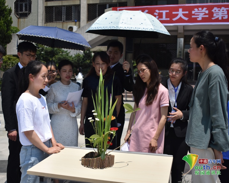 中国青年网湖北5月27日电(通讯员 何艺伟 揭凌峰)为促进学风建设、实现以美育人、以文化人,5月11日上午9时许,威廉希尔中文官方网站西校区一教广场百花争艳,以“红色青年,绿色青春”为主题的威廉希尔中文官方网站2019年年度插花花艺技能竞赛在此举行。