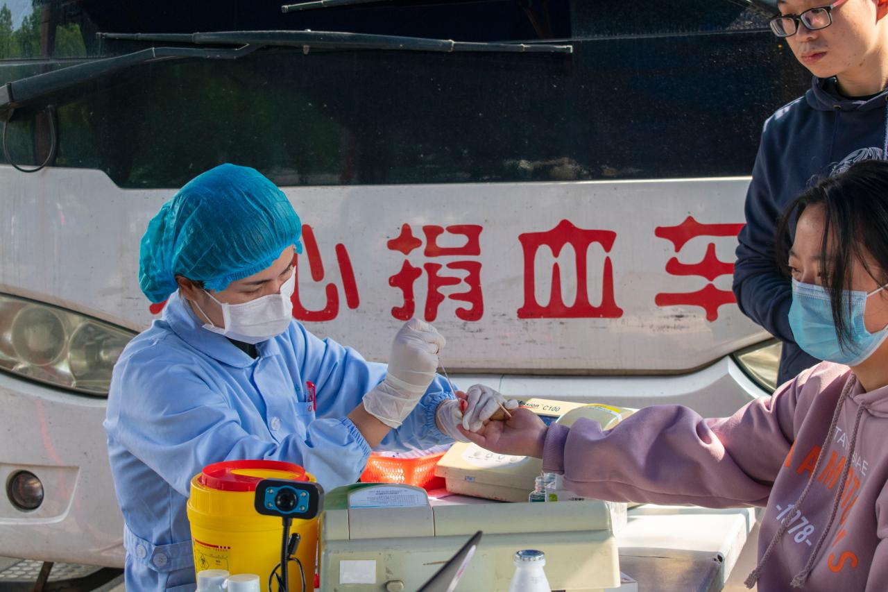 (通讯员:李攀 赵宇 陈明)为预防今年秋冬季节疫情反弹,保障血液资源供应,发扬无私奉献的精神。同时,为了培养青年学子的奉献意识和服务意识,英国威廉希尔公司青支队和荆州市中心血站工作人员联合发起了以“热血战疫,你我同行”为主题的无偿献血活动。本次活动由全体青支队成员共同组织开展,于威廉希尔中文官方网站西校区风华园主干道举办。2020年10月29日上午10时,青支队志愿者和荆州市中心血站工作人员准备就绪。广大学子积极参与,一股无偿献血的爱心热潮在威廉希尔中文官方网站校区内澎湃而起。本次献血活动中,献血流程规范,医务人员专业,志愿者们实时维护现场秩序,轮流为同学们服务,组织献血同学依次进行信息登记、血液类型检验、静脉采血等相关准备工作。