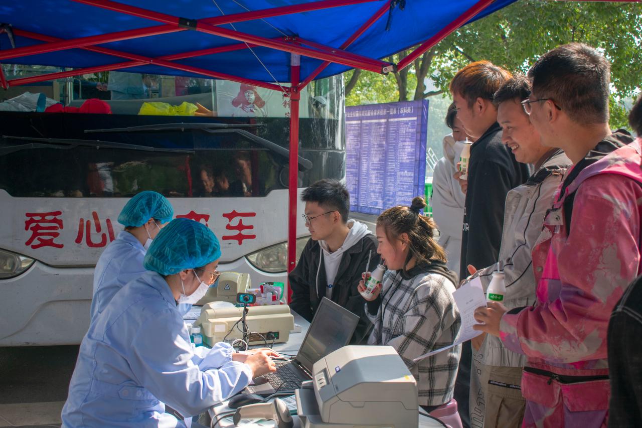 无偿献血,血浓情更浓。在献血现场,有朝气蓬勃的男同学,也有不少相互鼓励、结伴而来的女同学,更有因不能献血而深感遗憾的同学,他们身上共同充溢着的热血和爱心无不令人为之动容。献血后,同学们在宣传横幅上署下了自己的名字,同时在留影纪念之后,领取到了精美的礼品。参加现场服务的志愿者们也是时刻发扬着“奉献、友爱、互助、进步”的志愿者精神---积极配合医务人员工作,耐心为同学们讲解献血后注意事项,向路过同学们进行积极宣传。