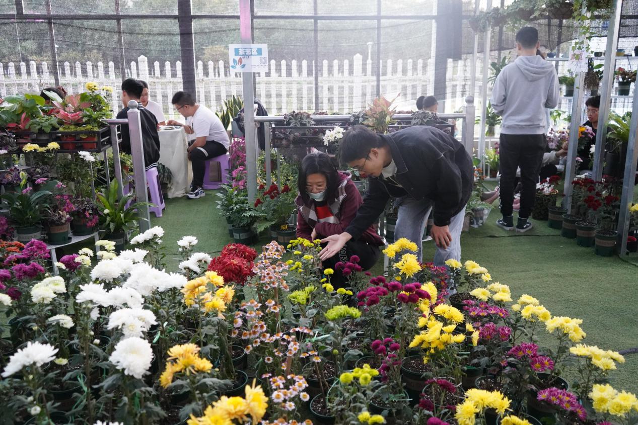 据了解,此次菊展开放时间较长,每天都有老师和同学前来观赏,甚至还有慕名而来的校外参观者。菊展工作人员热情地引导前来观赏人员入场以及介绍有关菊花的相关知识。例如讲解标本菊花盆栽、菊花鲜切花、菊花造景、多肉盆栽、绿植盆栽、无土栽培草莓等。同学们纷纷惊叹和感慨植物的神奇并表示在此次菊展中受益匪浅。本次玻璃温室展出的菊花共计一百二十多个品种、两千余盆。除了常见的黄色、白色、红色、橙色品种以外,还有罕见的绿色品种,吸引了大片参观者的目光。以花入道,以茶会友。会展现场不仅有千姿百态的菊花,还有茶艺专区,让参观者赏菊的同时观赏到技艺高超的茶艺表演。虽然参观者来自各个年龄段,跨度较大,却都能在这里找到属于自己的快乐。据项目负责人侯书旺统计,截至11月10日,入场人次已经突破一千人次。