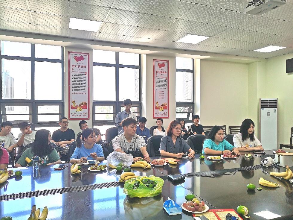 交流会现场,老师与同学们置身于弥漫着果香的会议室,在活跃的氛围下,此次会议取得了良好的效果。