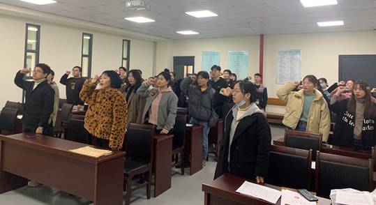 会议第二部分,全体党员以及预备党员重温入党誓词,高举右拳,进行了庄严的入党宣誓,表达了为共产主义事业奋斗终生的决心!