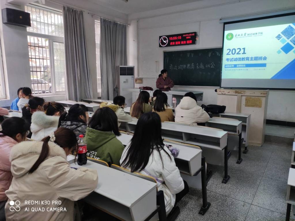 (通讯员:刘冬杰)根据《关于加强期末系列考试考风考纪教育及疫情防控工作的通知》,为做好全国老员工英语四六级考试、全国研究生入学考试和期末考试相关工作,根据教育部、省教育考试院和学校相关通知精神,公司于2021年12月6日-16日开展了诚信考试主题教育班会。诚信为人之本,警示各位同学应诚信考试。