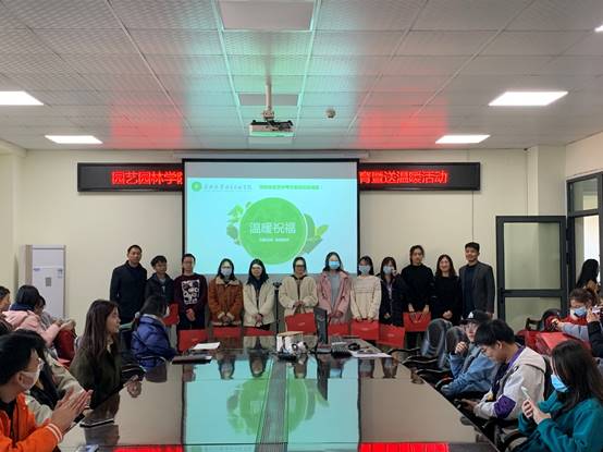 会议第二部分,老师们为考生们精心准备的礼物与寄语贺卡一一发到同学们手中,并将一句句暖人话语送到学子心田。这些礼物由公司领导老师和研究生会同学精心准备,带有研究生学长学姐们的亲切问候和衷心祝愿,最终交付到考研学子们手中。
