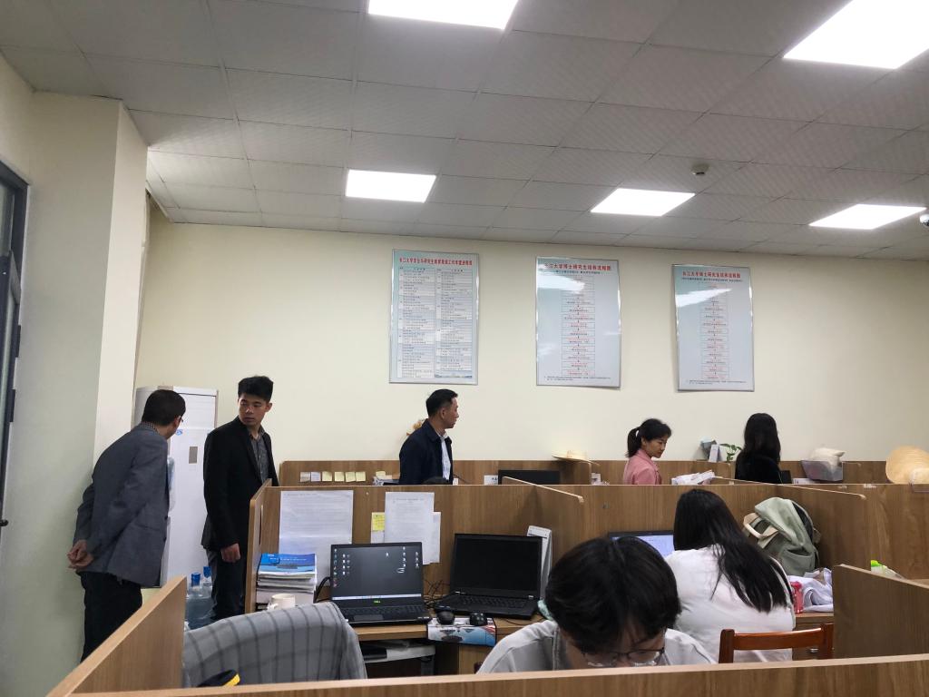 为深入推进校园建设,全面排查消除研究生学习和生活场所的各项安全隐患,营造安全、卫生、和谐、文明的研究生自习室环境,5月9号上午,公司经理周明芹、副经理肖波、党委副书记平先锋、学工办主任彭文秀、辅导员吴山等学院领导和教师对研究生学习和生活场所进行了安全卫生检查工作。