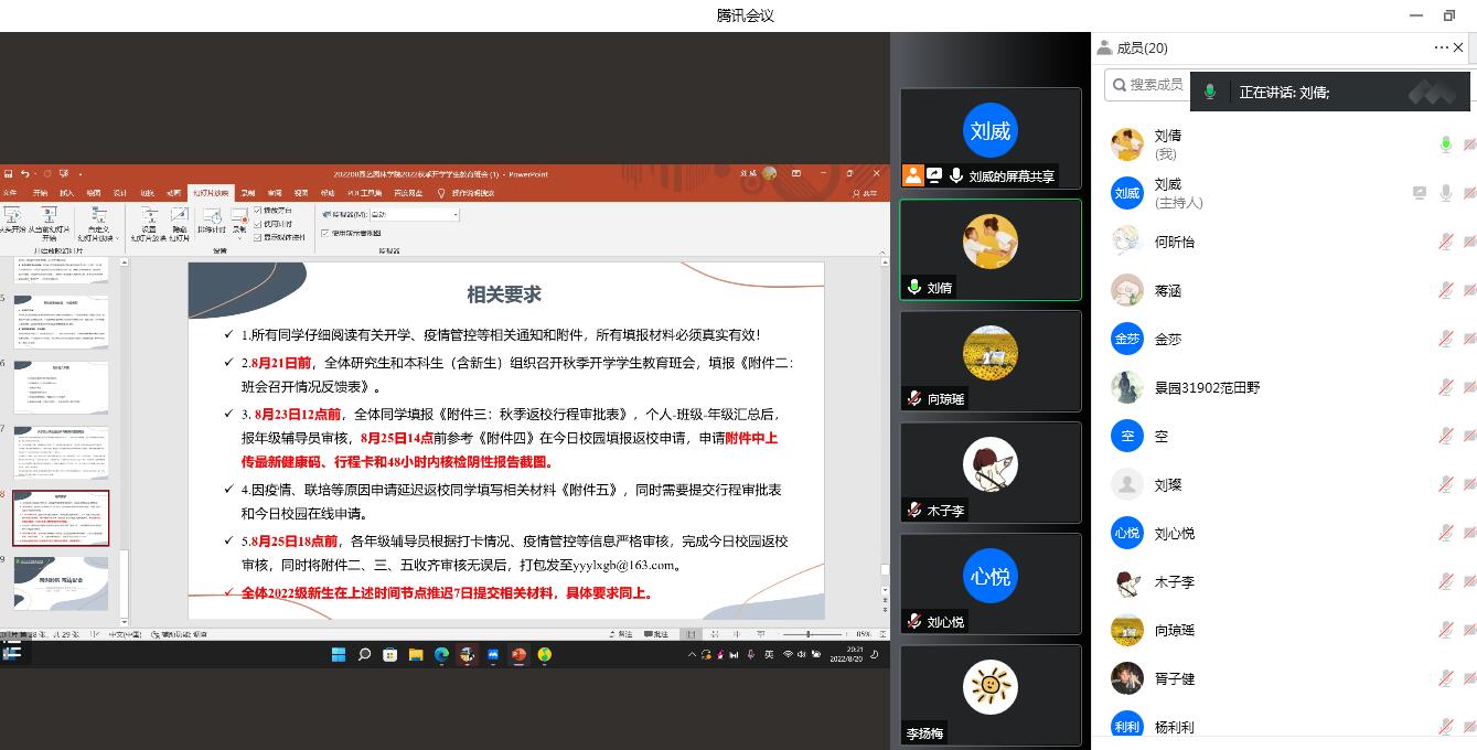 (通讯员:陈聪)当前,国内外新冠肺炎疫情防控形势依然严峻。为有效降低疫情传播风险,确保公司2022年秋季学期开学工作平稳有序,英国威廉希尔公司于2022年8月开学前以班级为单位通过线上腾讯会议方式开展秋季开学教育主题班会。