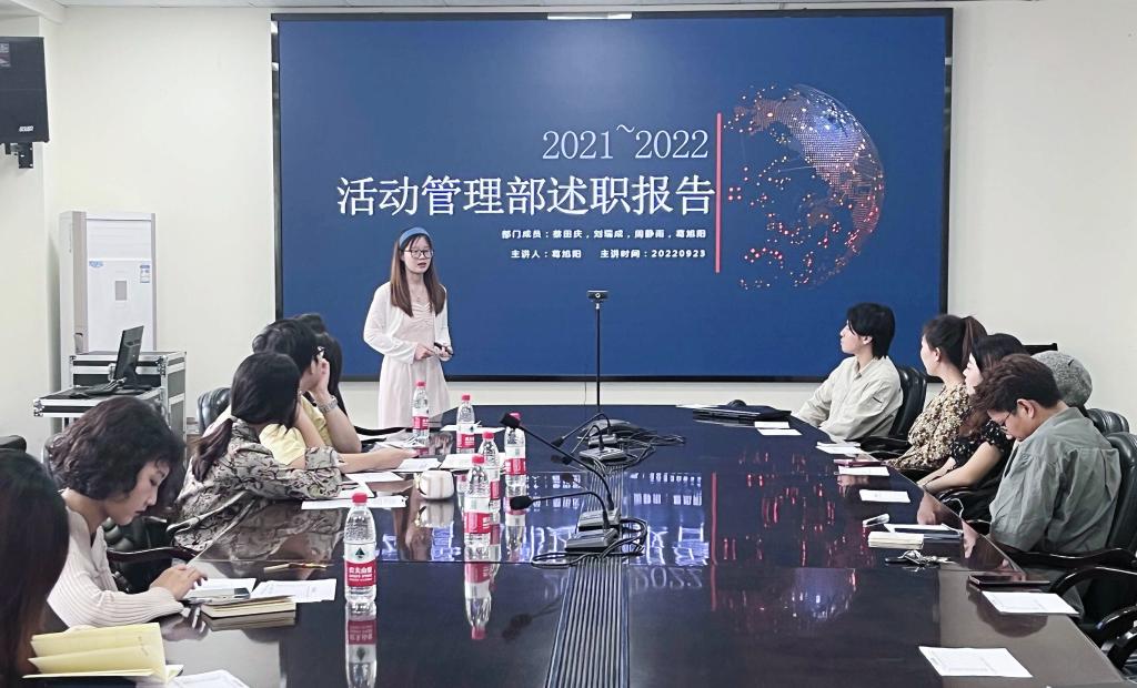 会议第一部分,第二届研究生会主席团与各部门负责人分别对一年以来各部门工作进行述职汇报。研究生会主席解宇轩首先总结了上一年的整体工作,对于研究生会接下来的发展提出了工作设想。