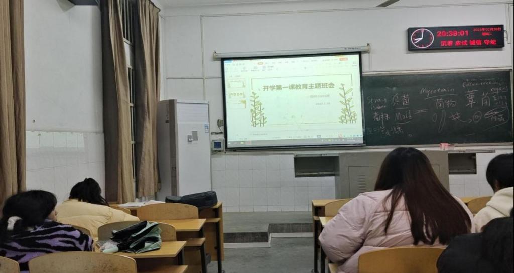 在“开学第一课”的系列活动中,面对怀揣着热情和向往的入学新生,智慧农业32202班的班主任是这样说的“春季有时候气温变化幅度也比较大,很容易得流感性传染病,同学们一定要做好个人防护,出去玩的时候也带好口罩。”“电信诈骗和不良网贷已经是一个老生常谈的话题了,同学们都是老员工了,一定要提高警惕,多加思考;有困难一定要第一时间和老师说,老师们时刻都在你们身后啊,不要怕给老师添麻烦。”班长成紫嫣同学也说道“如果大家在生活方面遇到什么困难,可以直接找辅导员或者班主任老师,最好不要在网上贷款。老师们肯定都是非常乐意帮助我们。”