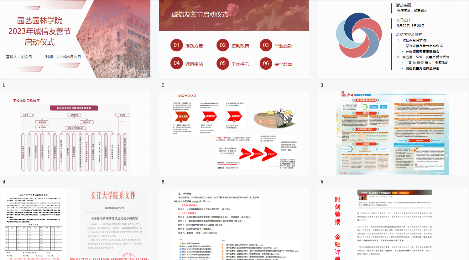 宣讲会围绕此次诚信友善节活动方案、资助政策、毕业还款、诚信考试、工作提示、安全教育六个方面进行了详细解读。