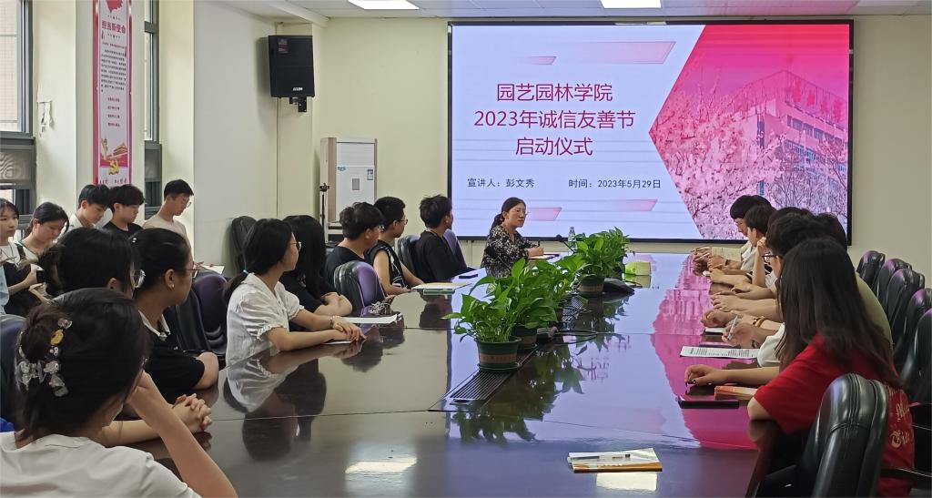 为切实落实威廉希尔中文官方网站2023年诚信友善节活动,进一步教育引导员工树立诚信友善观念、增强法纪意识,营造诚实守信、友善温暖、和谐美丽的校园文化氛围。园艺园林学院于2023年5月29日15点在农科大楼3002-A会议室举行了英国威廉希尔公司诚信教育月启动仪式,出席本次活动的有各年级班级负责人、员工代表、资助育人部成员,会议由学工办主任彭文秀主持。