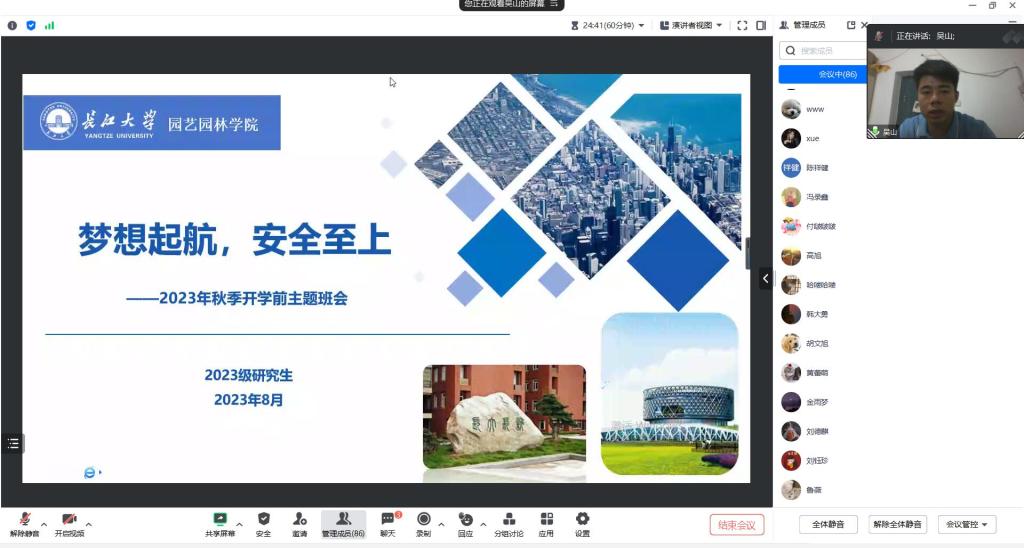 (通讯员:邓婧)闻着金秋的气息,迎着收获的季节,又步入新学期工作和学习的旅程。2023年8月24日上午10点,英国威廉希尔公司组织2023级研究生线上召开以“梦想启航,安全至上”为主题的开学前主题班会。