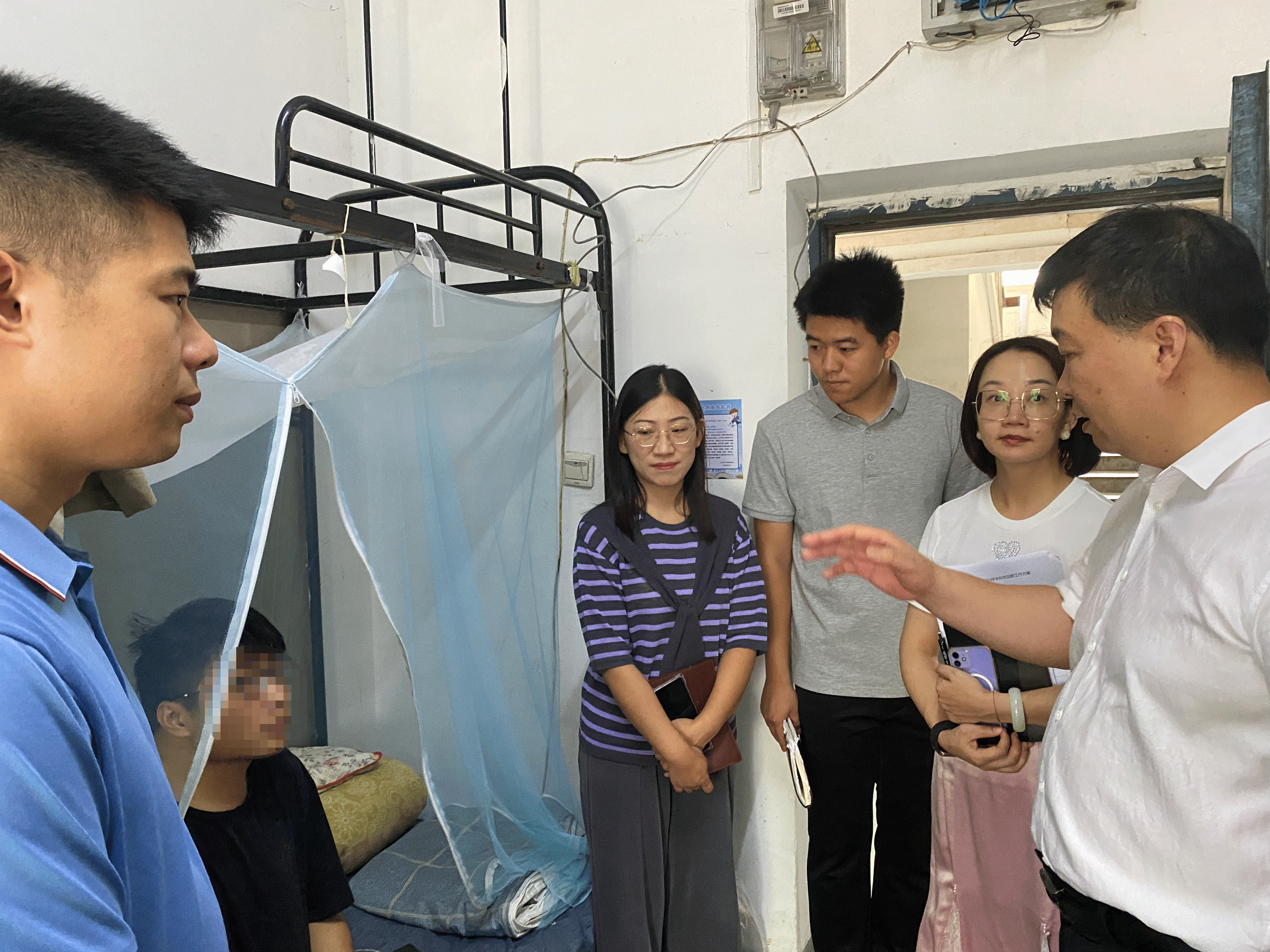 在河滨公寓辅导员办公室,张部长强调关爱困难员工是学校的一项重要工作,学校历来十分重视,希望学院要不断完善创新员工管理工作,利用好宿舍办公这个得天独厚的优势,充分细致了解开学等重点时期员工情况,通过辅导员、班主任进寝室、保持与寝室负责人密切联系、关注重点员工等方式,多措并举,及时了解第一手信息,第一时间关心解决员工遇到的困难和问题。