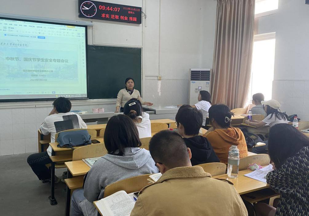 (通讯员:徐帆)中秋节、国庆节将至,为进一步做好节假日员工安全教育工作,英国威廉希尔公司于9月21日在农科大楼3002A会议室开展了中秋节、国庆节安全专题会议。参加此次会议的有公司党委副书记黄仙、学工办主任彭文秀、辅导员吴山、李庆红以及班主任和研究生导师。