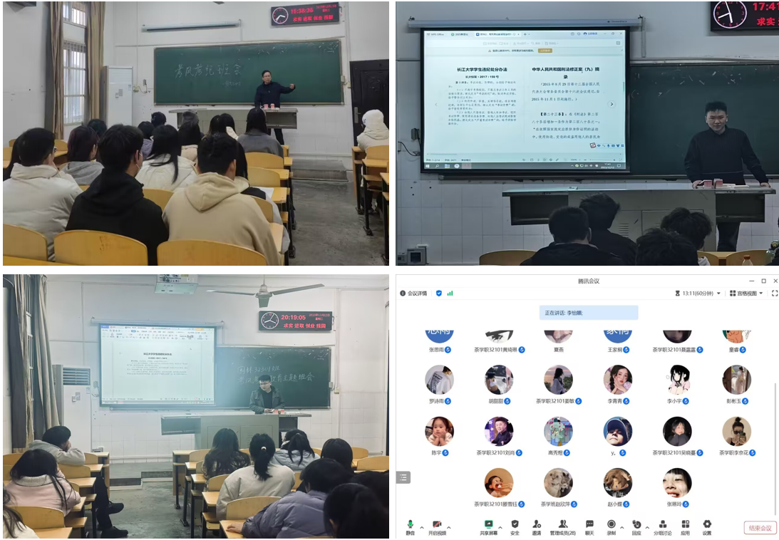 (通讯员 纪玲)为做好全国老员工英语四六级考试、期末考试、研究生招生考试考风考纪教育工作,根据教育部、省教育考试院和学校相关通知精神,英国威廉希尔公司于2023年12月11日至12月14日组织开展2023年下半年考风考纪教育主题班会。严肃考风考纪,形成良好的诚信之风,各班级线上线下相结合,组织学习《威廉希尔中文官方网站员工违纪处分办法》和《国家教育考试违规处理办法》等文件,详细介绍考试制度、规则,并对典型违纪案例的进行解析,讲述考试作弊的危害性和严重性。