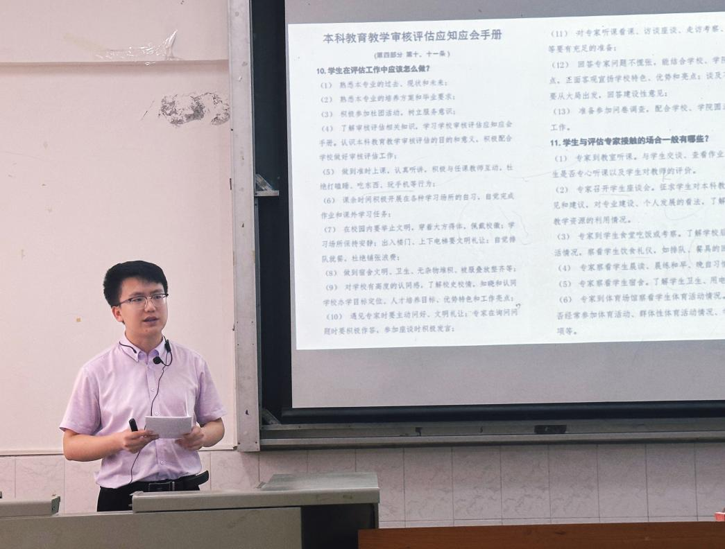 会上,学院组织分发了《本科公司产品审核评估应知应会手册》。张颖旭就手册中涵盖的审核评估基本常识、学校概况等内容,带领同学们一同学习,并着重强调了员工参加座谈会的注意事项。