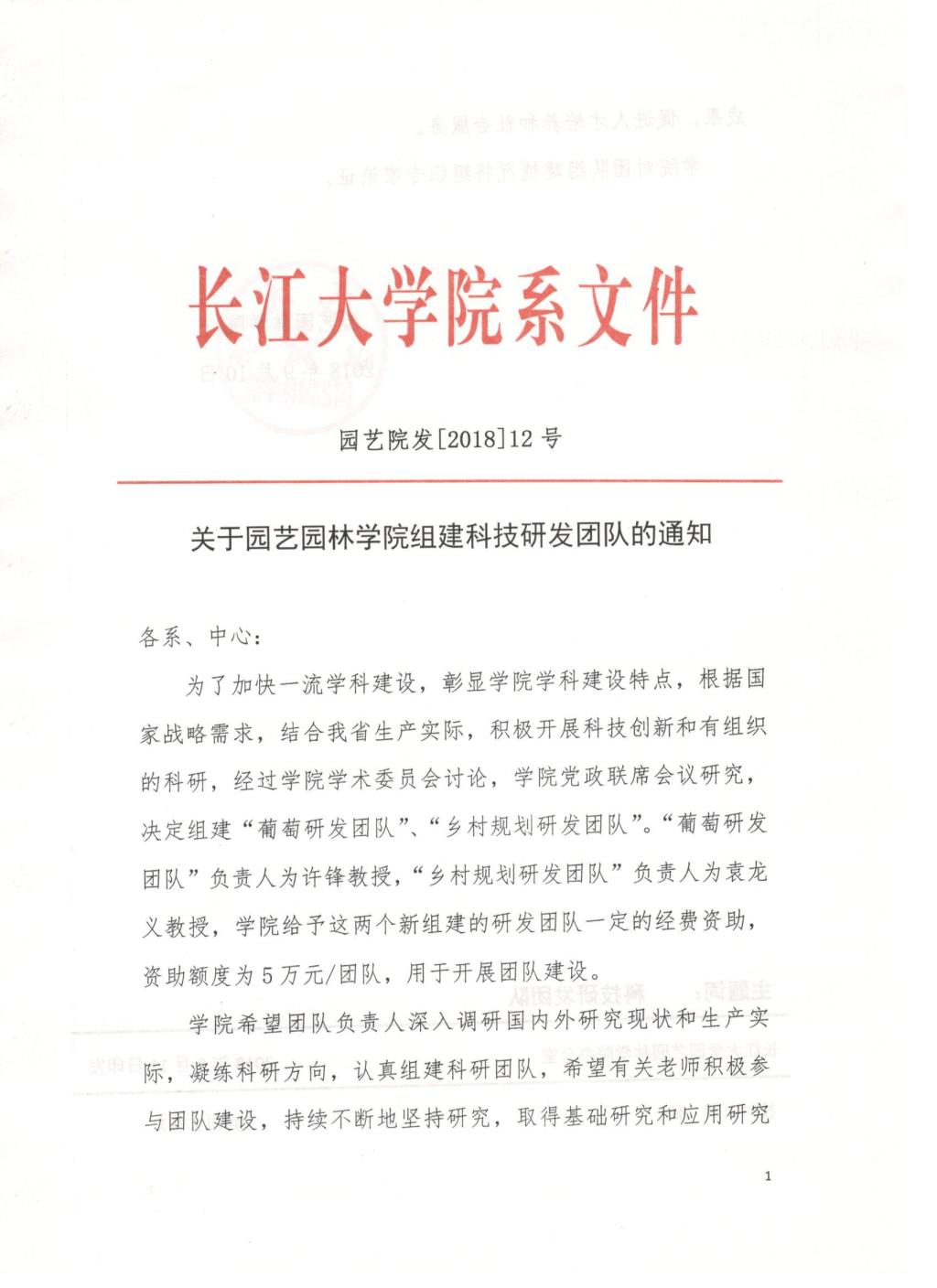 园艺院发【2018】12号关于英国威廉希尔公司组建科技研发团队的通知