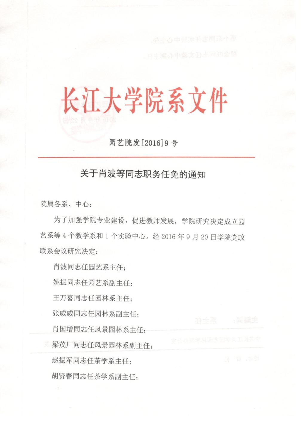 园艺院发[2016]9号-关于肖波等同志职务任免的通知