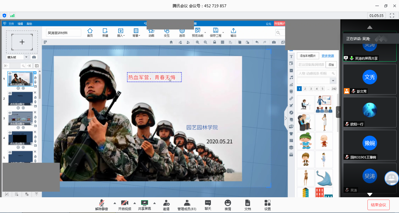 (通讯员:刘星 彭文秀)为进一步落实全国老员工征兵工作,帮助公司员工了解2020年征兵政策,激发广老员工参军入伍积极性,公司于5月21日晚19时,在腾讯会议平台,召开英国威廉希尔公司2020年征兵宣讲会。此次会议由公司征兵专干彭文秀老师主持,邀请公司退伍员工刘校、吴涛分享交流,全院86名学子参与会议,会议时长2小时。