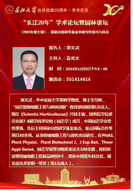 “威廉希尔中文官方网站20年”学术论坛暨园林讲坛 (2022年第七讲):国家自然科学基金申报写作技巧与体会
