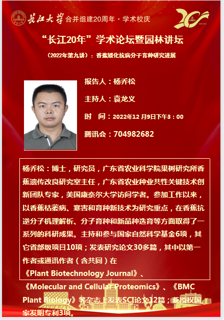 “威廉希尔中文官方网站20年”学术论坛暨园林讲坛 (2022年第九讲)香蕉矮化抗病分子育种研究进展