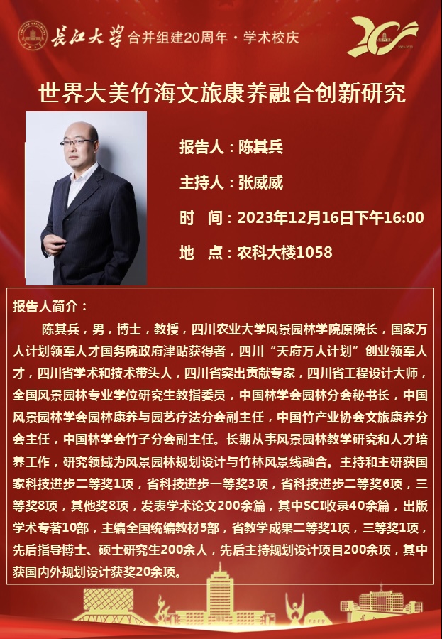 “威廉希尔中文官方网站20年”学术论坛暨园林讲坛(2023年第九讲):世界大美竹海文旅康养融合创新研究