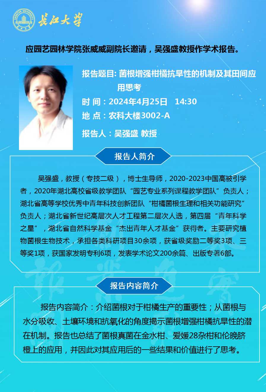 园林讲坛(2024年第七讲):菌根增强柑橘抗旱性的机制及其田间应用思考