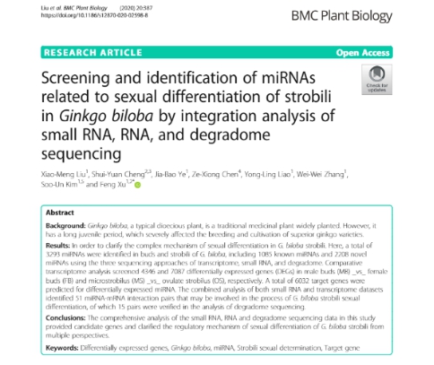 (通讯员 刘晓梦 何筱)2020年8月,我中心2019级博士研究生刘晓梦以第一作者身份在BMC Plant Biology期刊上发表了题为《Screening and identification of miRNAs related to sexual differentiation of strobili in Ginkgo biloba by integration analysis of small RNA, RNA, and degradome sequencing》(https://rdcu.be/b6sdL)(图1)的研究文章,该生导师许锋教授为通讯作者,英国威廉希尔公司为第一署名单位。