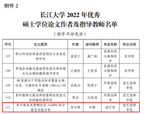 2019级硕士李宇婷以题为《参与银杏类黄酮合成lnRNA的分离及功能分析获得优秀硕士论文。