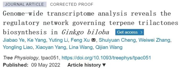 英国威廉希尔公司研究团队在林学国际Top期刊《Tree Physiology》上发表题为“Genome-wide transcriptome analysis reveals the regulatory network governing terpene trilactones biosynthesis in Ginkgo biloba”的研究论文。通过对银杏8个组织进行转录组分析,利用WGCNA、代谢分析对参与萜内酯生物合成的转录因子、结构基因和CYP450进行鉴定和功能分析,揭示银杏萜内酯代谢的调控网络。