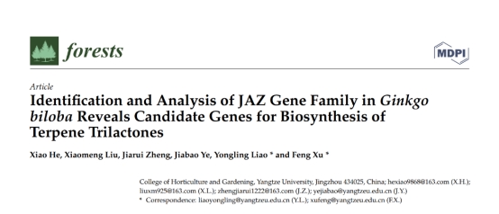 2022年5月,我中心2020级硕士研究生何筱在国际学术期刊《Forests》(农林学科3区,影响因子3.282)上发表了题为“Identification and Analysis of JAZ Gene Family in Ginkgo biloba Reveals Candidate Genes for Biosynthesis of Terpene Trilactones”的综述论文。硕士研究生何筱为文章第一作者,许锋教授和廖咏玲老师为通讯作者,威廉希尔中文官方网站为第一署名单位。